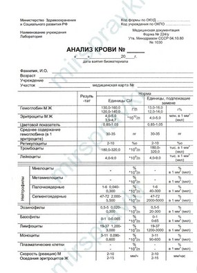 ПодробнееОбщий клинический анализ крови форма 224/у