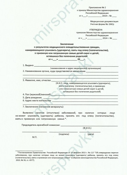 Справка для опеки 164/у